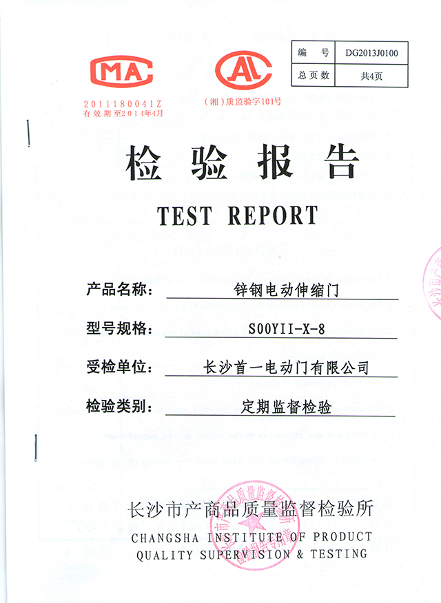 鋅鋼電動伸縮門檢驗報告